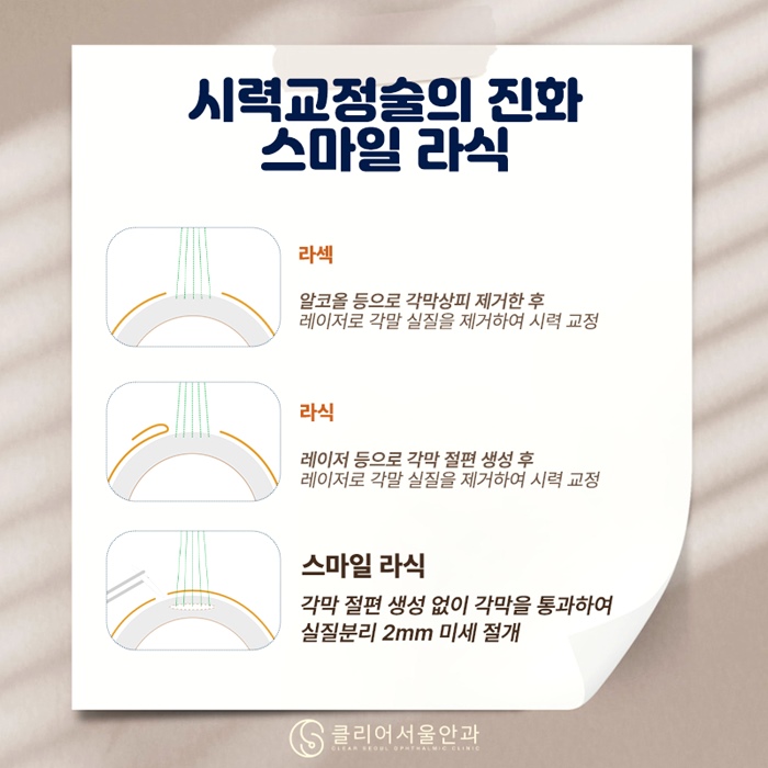 2세대 시력교정술인 라섹, 3세대 시력교정술인 스마일라식이