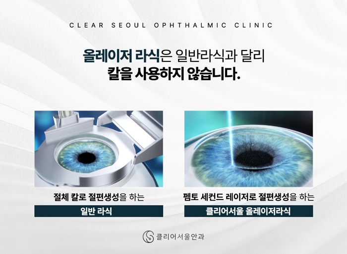 클리어 서울안과의 라식은 올레이저 방식을 사용합니다. 절편을 만들 때