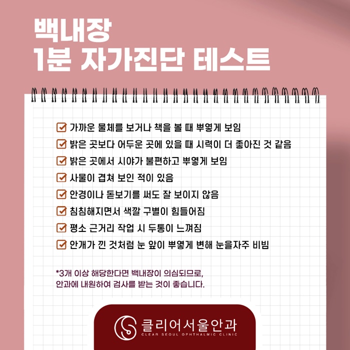 이게 3개이상 해당한다면 백내장이 의심되므로,