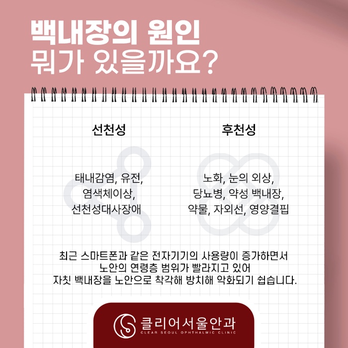 백내장의 원인 뭐가 있을까요? 백내장의 원인으로는 두가지로