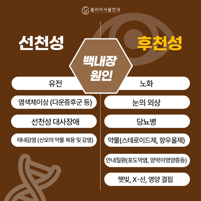 망막이영양증 등)과 햇빛, X-선, 영양결핍으로 생깁니다.